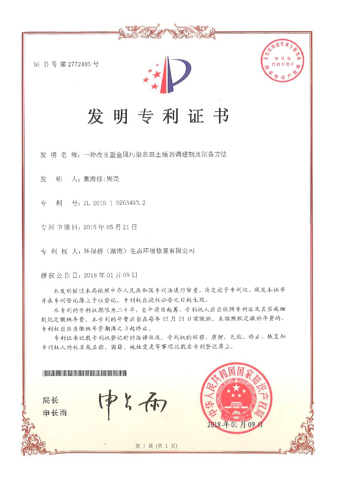 “楚戈”土壤調(diào)理劑由環(huán)保橋(湖南)生態(tài)環(huán)境工程股份有限公司研發(fā)制造,擁有自主知識產(chǎn)權(quán),獲授權(quán)多件國家發(fā)明專利,擁有國家級肥料登記證,榮獲湖南省技術(shù)發(fā)明獎。