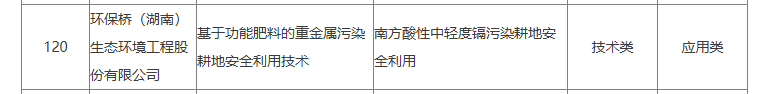 ?環保橋(湖南)生態環境工程股份有限公司自主研發的“基于功能肥料的重金屬污染耕地安全利用技術”成功入選!同時是受污染耕地安全利用領域唯一入選技術!