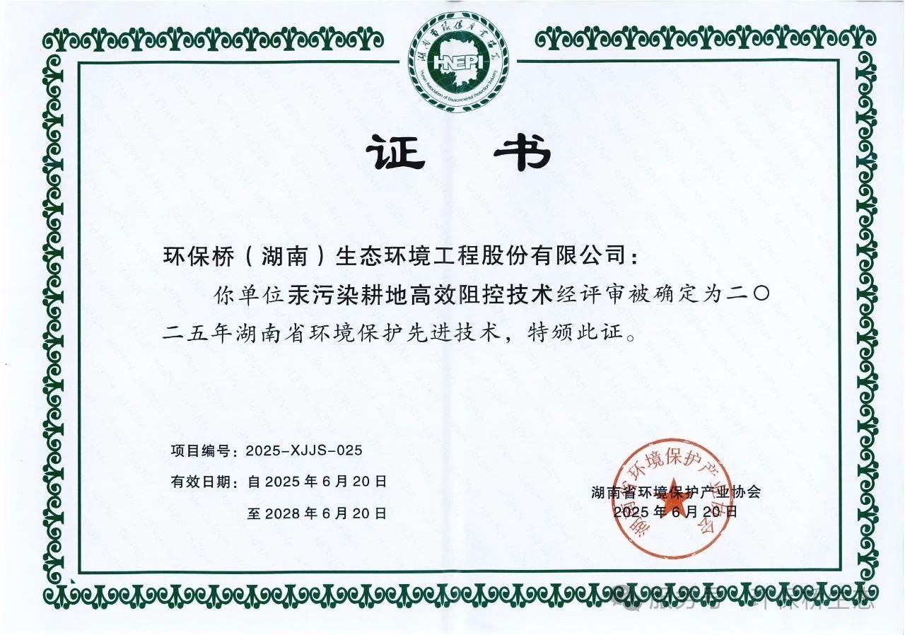 這是繼重金屬污染耕地土壤鈍化+葉面阻控立體式安全利用技術、超級累植物萃取+穩定化聯合修復技術、基于功能肥料的重金屬污染耕地安全利用技術后,我司又一項自主研發技術被確定為湖南省環境保護先進技術。