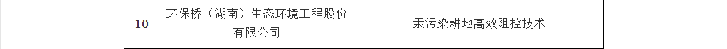 環保橋(湖南)生態環境工程股份有限公司自主研發的“汞污染耕地高效阻控技術”成功入選,成為受污染耕地安全利用領域唯一入選技術。這是繼2017年、2018年、2019年、2023年后,環保橋公司自主研發技術又一次入選該權威名錄。